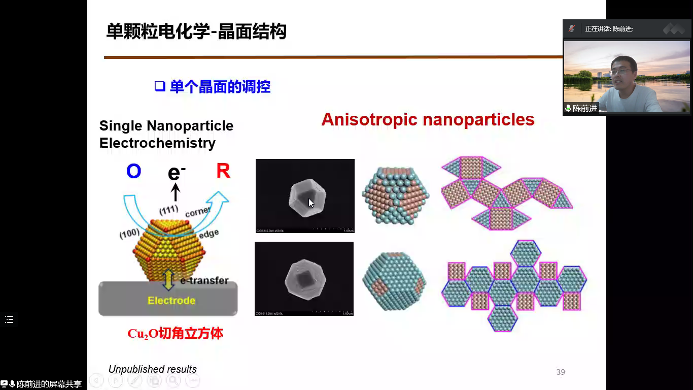 电化学反应涉及复杂的动力学过程和异质性特征,同时高时间与高空间分辨捕获界面反应信息具有重要的意义。本报告中,陈前进研究员介绍了这一技术的基本原理、探针制备、优势与局限,并详细讲解了其在纳米催化剂及界面电化学过程的微观电化学成像研究方向的成果,包括单个纳米气泡微观动态行为、单个纳米晶颗粒及其有序组装体超颗粒的电催化反应过程等。参会人员就单纳米气泡稳定性、电极尺寸依赖关系以及扫描电化学显微镜应用等问题与陈前进老师进行了探讨,收获颇多。