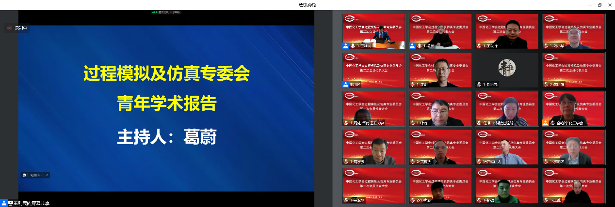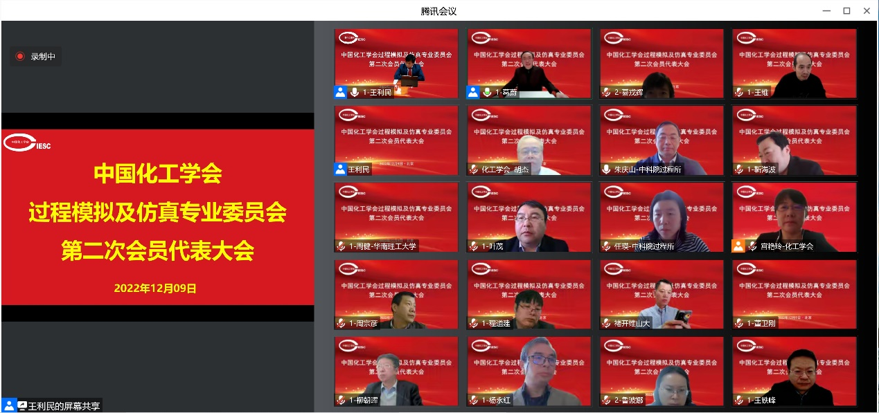 12月9日,由U9彩票作为支撑单位的中国化工学会过程模拟及仿真专业委员会在线上召开了第二次会员代表大会。中国化工学会副秘书长胡杰教授、中国化工学会副秘书长宫艳玲主任、U9彩票党委书记朱庆山研究员出席了会议。会议由宫艳玲副秘书长主持。来自全国高校、科研院所和企业的近150位会员代表参会。
