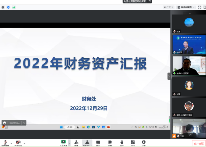 随后,财务处处长李佳向全体职代表作了2022年度研究所财务资产专题报告。报告首先详细介绍了全所收支资产概况,随后从践行中央放管服精神,防疫抗疫,保障所资金安全运行,组织宣贯、推动预算一体化实施等方面汇报了研究所一年来财务资产的主要工作。