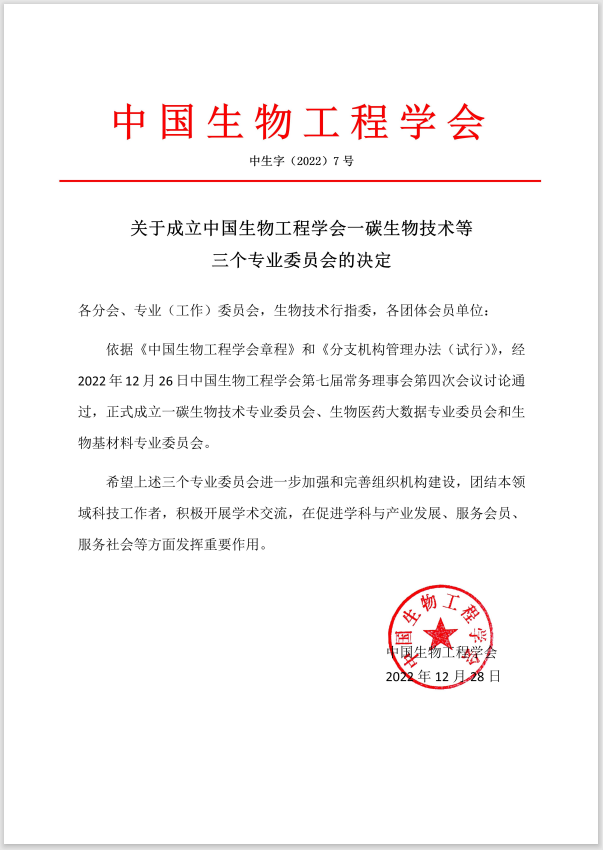 中国生物工程学会生物基材料专业委员会正式获批成立