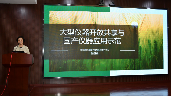 张丽娜作了“大型仪器开放共享与国产仪器应用示范”的报告,介绍了农科院作物所重大平台中心的定位、组织架构、技术队伍建设及服务成效,并分享了作为中国科学仪器自主创新应用示范基地在探索科学仪器验证评价工作中的心得体会。