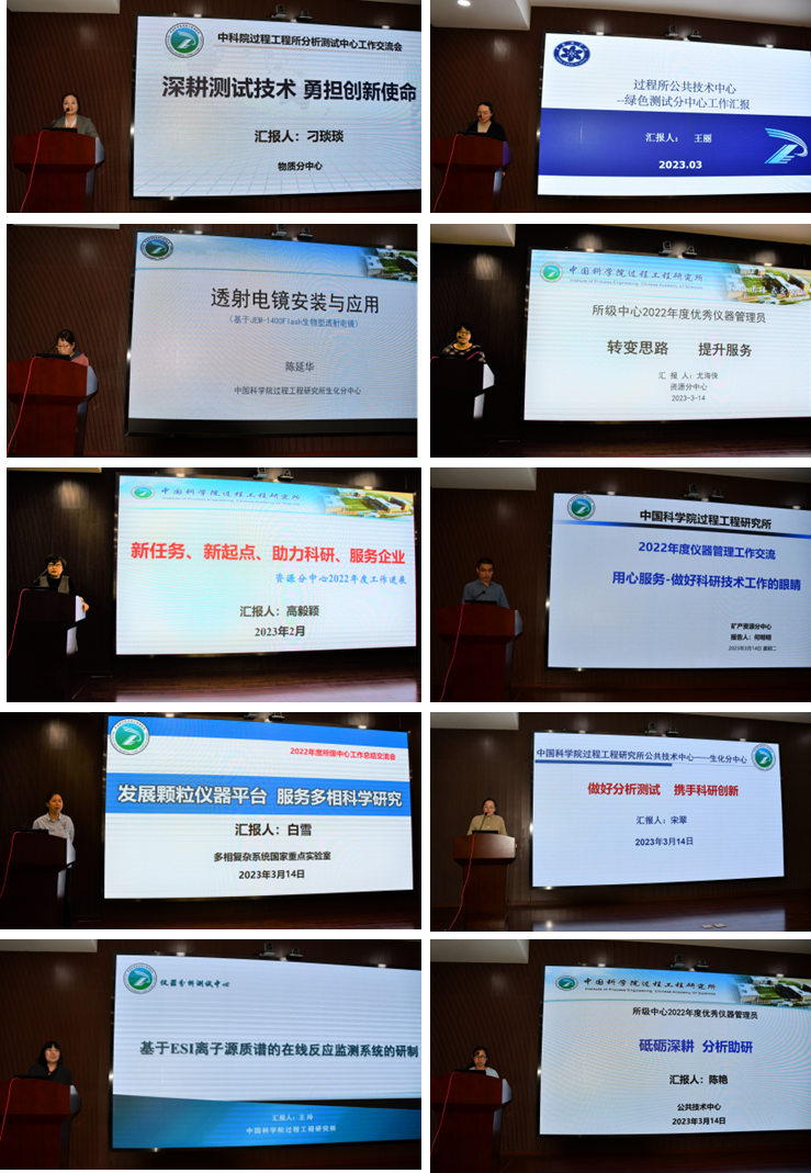 会上,公共技术中心副主任王志玲宣读了2022年度优秀仪器管理员表彰决定。生化分中心宋翠、颗粒分中心白雪、物质分中心刁琰琰、资源分中心高毅颖和绿色分中心王丽,分别就分中心建设及共享服务情况进行了汇报交流。同时2022年度优秀仪器管理员王玲、陈延华、陈艳、何明明和尤海侠进行了工作经验分享与交流。