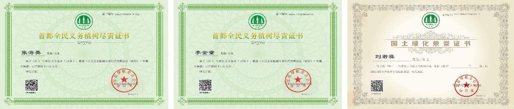 全民义务植树尽责证书及国土绿化荣誉证书
