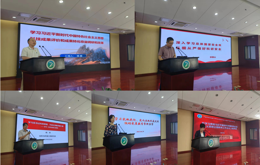 党委委员党课阶段,副所长、党委委员杨超以“学习习近平新时代中国特色社会主义思想-科技成果评价和成果转化收益调研和改革”为主题,给大家讲党课。首先,杨超通过详细解读“六个坚持”,带领大家全面领会了习近平新时代中国特色社会主义思想世界观和方法论,并指出广大党员们要在主题教育过程中要把握好这一思想的世界观和方法论,并在工作中坚持好、运用好。随后结合分管科技成果转化工作以及调查研究,从国家开展科技成果评价改革试点背景、体制机制、调研结果、对策建议、问题讨论等五方面探讨了科技成果评价和成果转化收益调研和改革工作,最后指出研究所要通过改革,探索出有利于产业化的分类评价方法,构建绿色制造“科教产”共赢创新系统,实现重大创新成果快速转化为生产力,打通从基础到应用的创新链条。