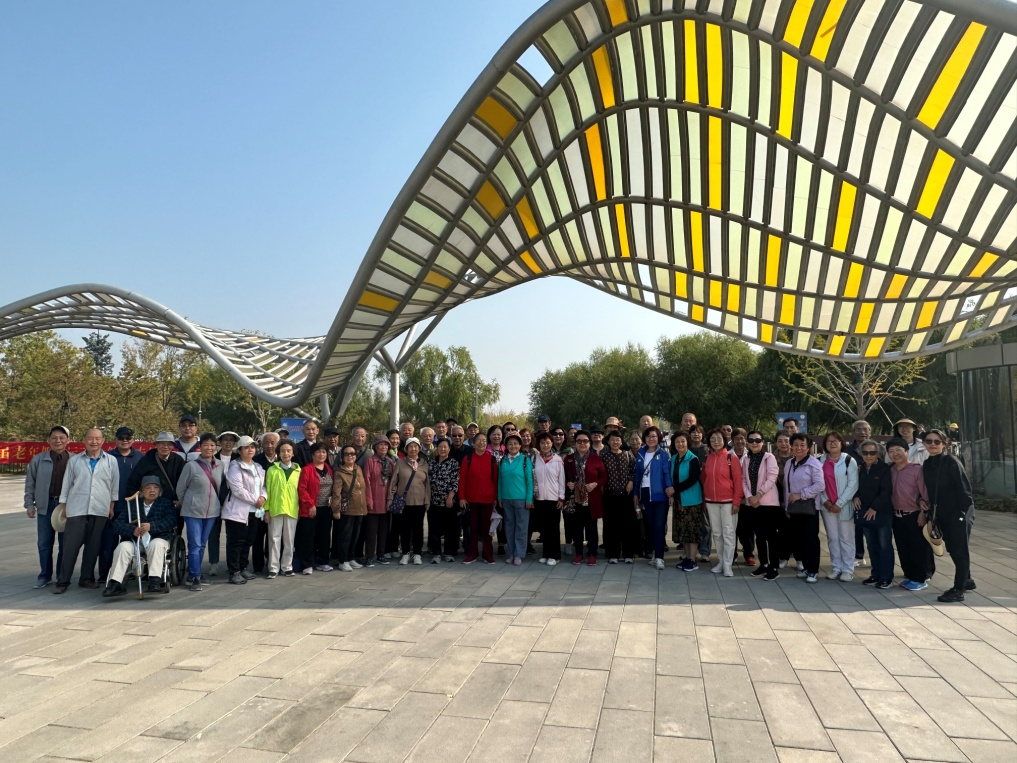 在温榆河公园,老同志漫步其中,感受到了秋天的唯美画卷,观景台上俯瞰了周边景色,大家纷纷驻足拍照合影。本次活动老同志感悟自然风光的同时,呼吸了新鲜空气也锻炼了身体。