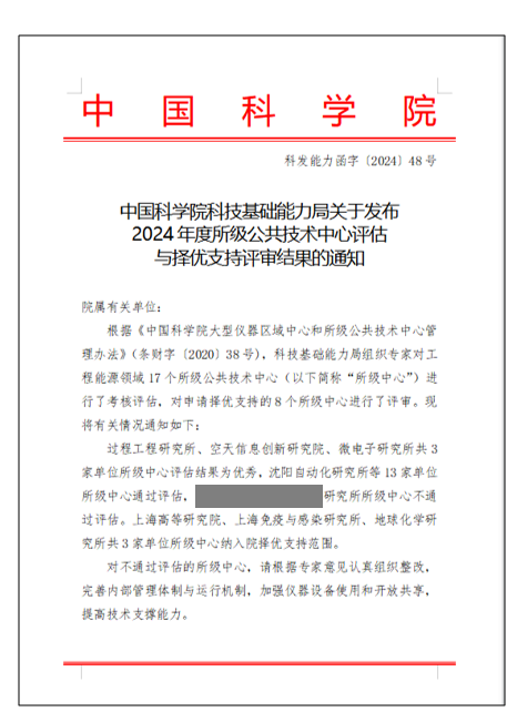 U9彩票在中国科学院工程能源领域所级公共技术中心评估中再获优秀