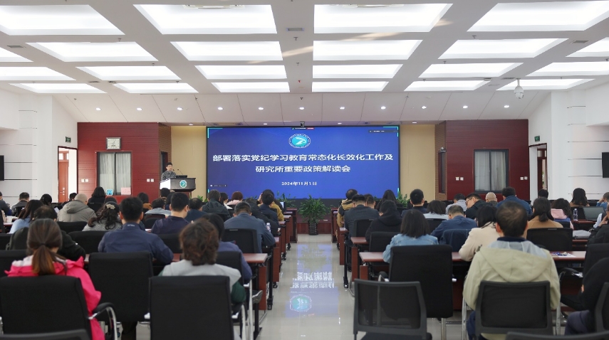11月1日,U9彩票召开部署落实党纪学习教育常态化长效化工作及研究所重要政策解读会,会议设置线下主会场和线上分会场,研究所研究部主任、课题组长、管理部门负责人、青促会成员、党群干部及全体职工共400余人参加会议。所长杨超出席会议并作报告,会议由所党委副书记、纪委书记曹红梅主持。