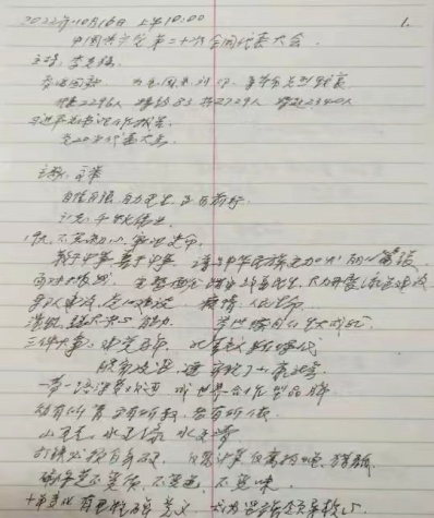 老党员们非常认真地聆听了习近平总书记的报告,倍受鼓舞。年近八旬的徐永兰同志将听报告的笔记发到支部群,工整秀气的字体跃然纸上,体现出老党员一丝不苟认真学习的精神。