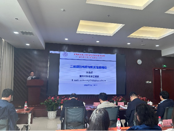 论坛共分为两场,第一场由杨超和绿色化工研究部主任杨良嵘主持。化学所所长、研究员王树作了题为“有机半导体人工光合体系的构筑与生物转化”的报告;北京大学化学院院长、教授陈兴作了题为“糖密码的化学解析”的报告;中国科学院大连化物所研究员杨惟慎作了题为“分子筛膜多维构筑基元及其分离应用”的报告;北京化工大学教授曹达鹏作了题为“多孔框架材料的吸附分离及半导体性能研究”的报告;清华大学教授王海辉作了题为“二维MXene膜的精密构筑及性能调控”的报告。